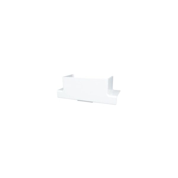 Derivação em “T” para calha 110×34 branca. Indicado para disfarçar derivações numa instalação com calhas técnicas.