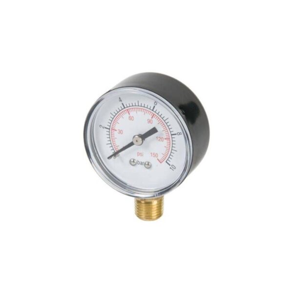 O mostrador circular é fechado numa caixa de metal para corrosão. Fácil de instalar e fácil de usar, facilita seu trabalho proporcionando uma leitura clara. Este manômetro é uma ótima ferramenta de medição de pressão. Mede pressão com escala dupla psi / bar.