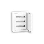 Quadro de embutir com capacidade para 40 módulos, ideal para instalações elétricas residenciais ou comerciais. Fabricada com base em plástico PSHI, aro e porta em alumínio lacado a branco.