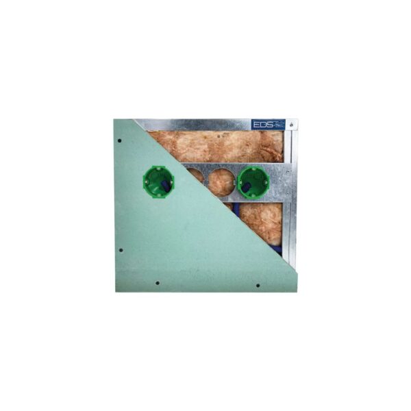 - Permite a colocação e organização da tubagem/cablagem antes da instalação das placas de gesso cartonado.