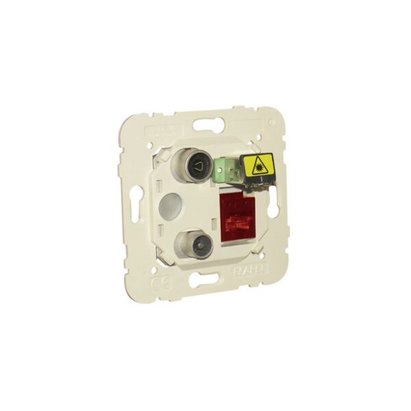 Mecanismo de tomada combinado que integra rádio/TV, rede de dados RJ45 Cat. 6 UTP e ligação de fibra ótica SC/APC num único ponto. Compatível com sistemas modulares Efapel, permite uma solução completa de comunicações, assegurando transmissão de dados de alta velocidade, sinal de TV e ligação em fibra com elevada fiabilidade.