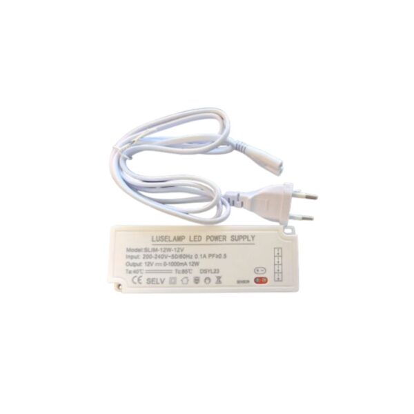 Fonte de alimentação de 12V para fita de LED, modelo LUSELAMP SLIM-12W-12V.